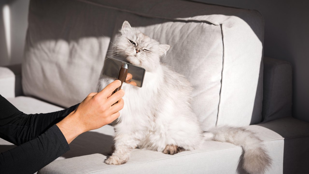 Гладкошерстную кішку досить вичісувати 1 раз на тиждень, довгошерста – мінімум 2-3 рази на тиждень. Привчайте вихованця до процедури поступово і куштуйте різні види щіток — з часом все вийде.